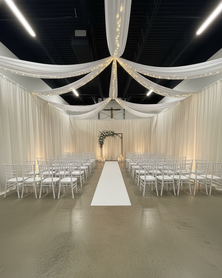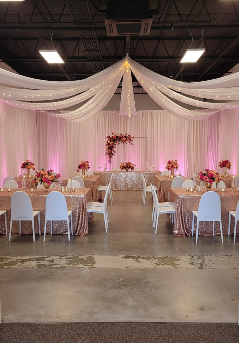 Décor setup beyond tables/chairs/linens is handled by your décor team.